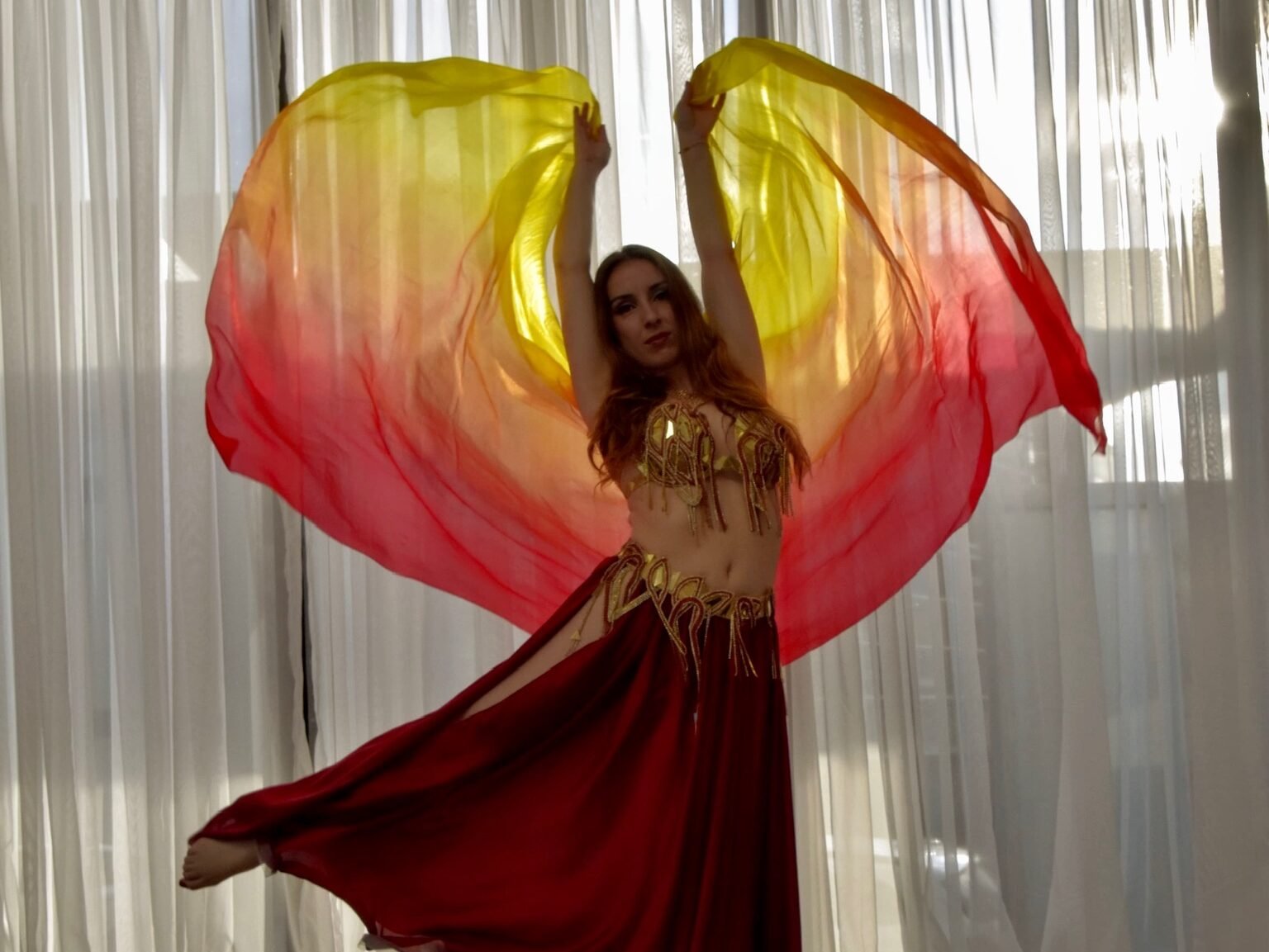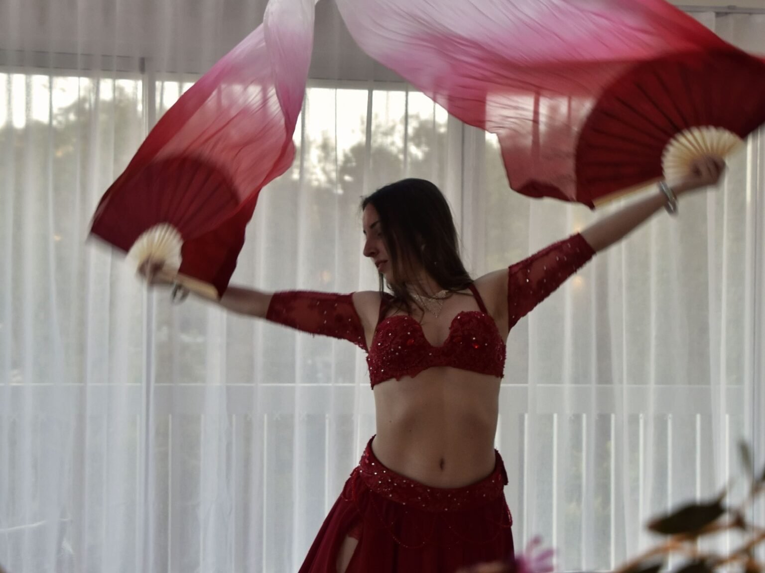 Experience a professional Middle Eastern dance show with selected props (veil, candelabrum, fan veils, Isis wings), a drum solo, and music curated for your event. Interactive moments with your guests can be included, creating a fully personalised performance.